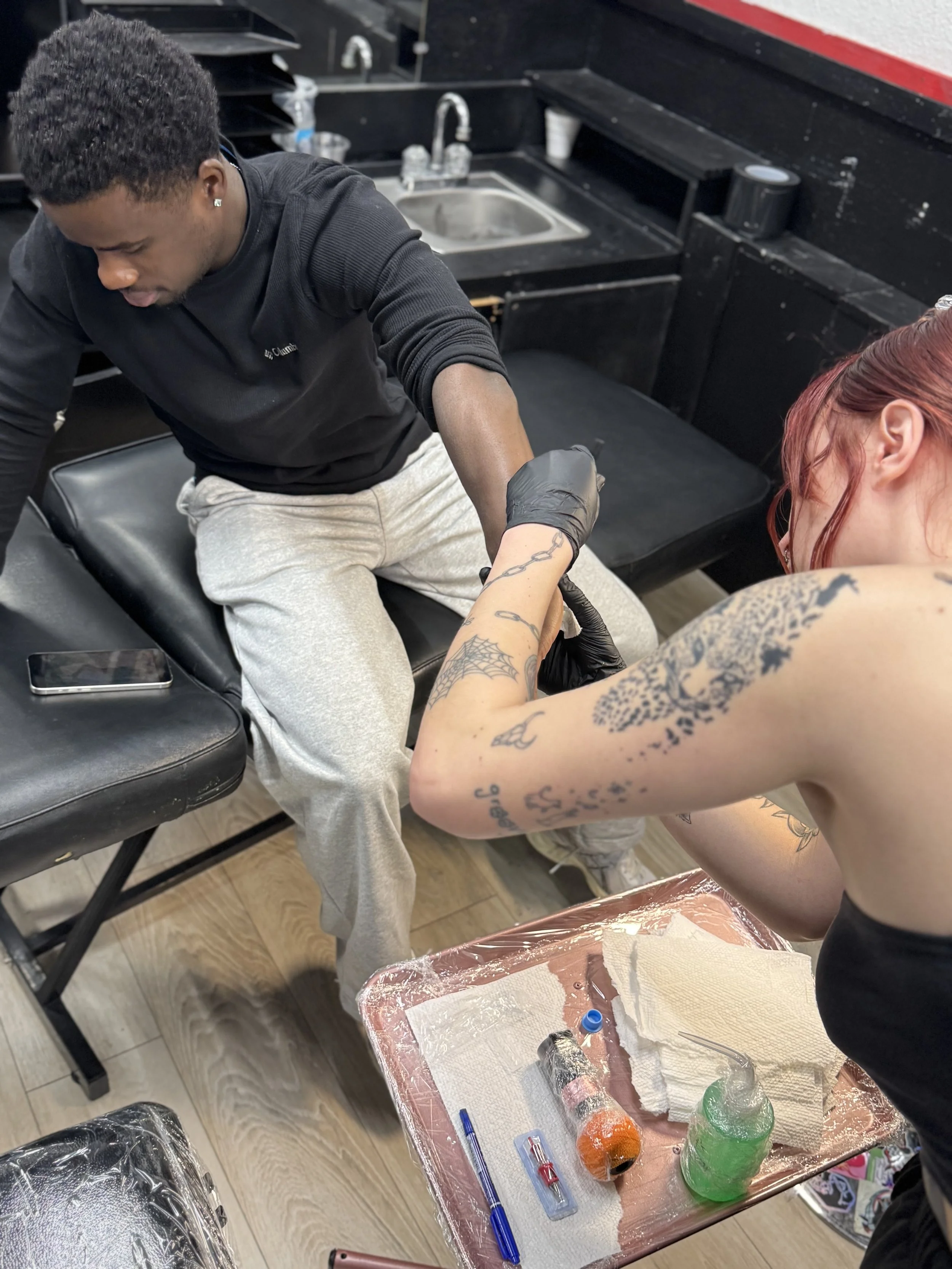 Learn the basics of tattooing! From building a design to stencil making. Taking that stencil and transferring to skin. Then the fun part, MAKE IT PERMANENT!!! Focus on learning and not be distracted by being the “Shop Bitch” with ridiculous side tasks and errands that have absolutely nothing to do with tattoos.